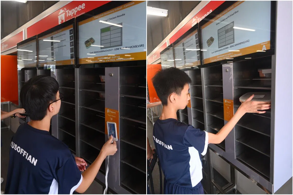 Its principal Chen Ziyang said the school canteen runs on a hybrid model, combining Sats’ central kitchen with supplementary food options. Students can collect pre-ordered meals from automated dispensers using their registered ez-link cards.