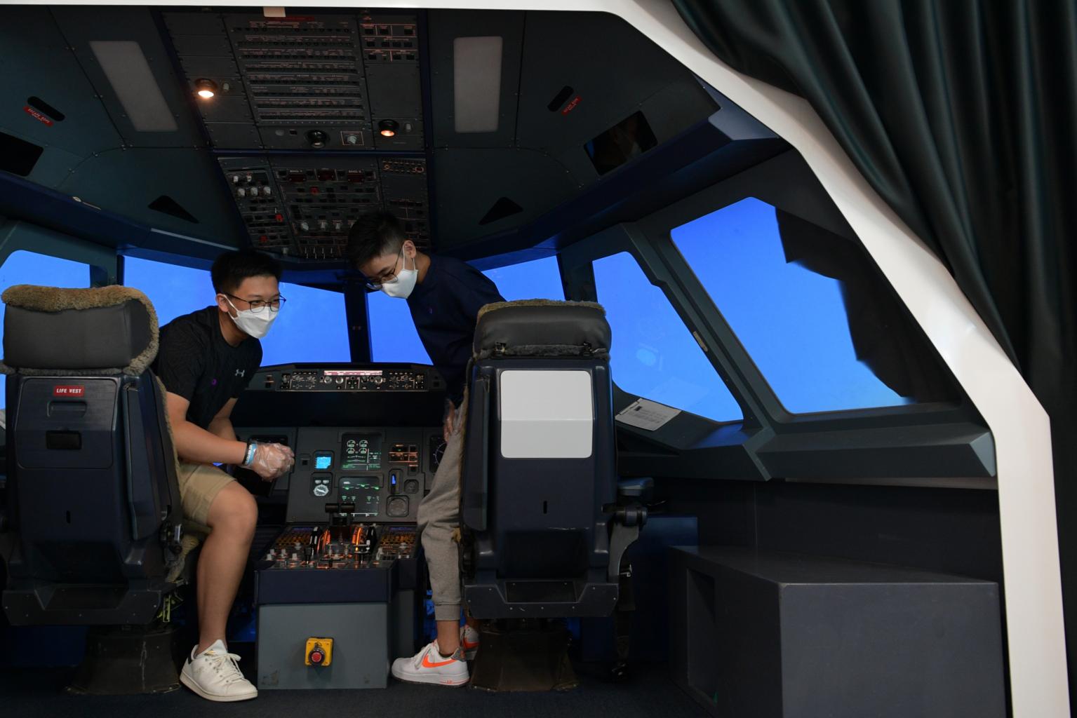 Visitors using a flight simulator at Ngee Ann Polytechnic's School of Engineering during the polytechnic's open house on Jan 6, 2022.