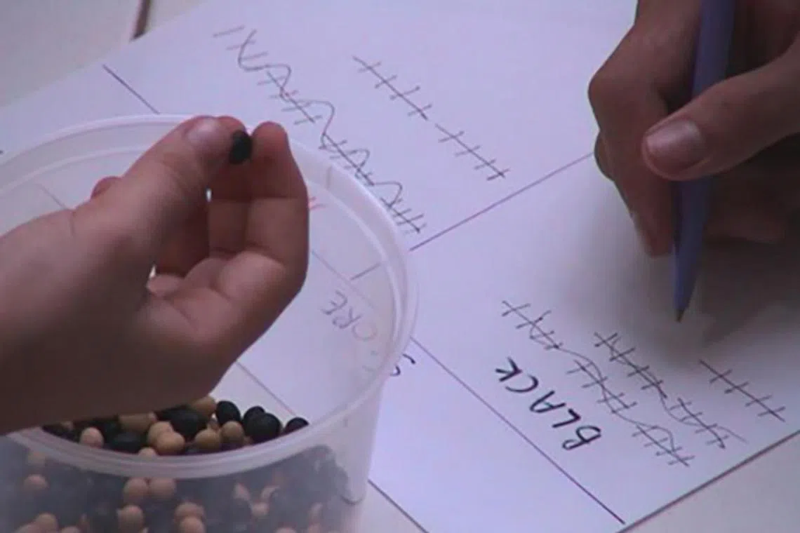 Picking out different coloured beans can help children to understand the concept of chance or probability.