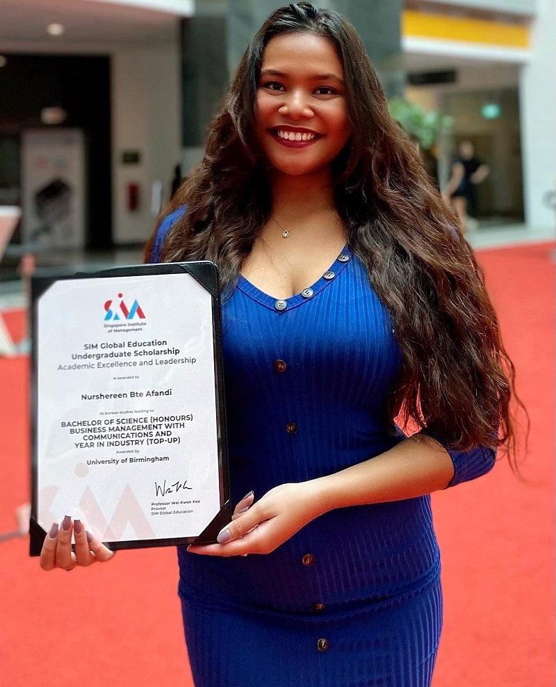Another student who has benefitted from SIM’s social initiatives is Ms Shereen Afandi, who is a recipient of the SIM Undergraduate Scholarship for Academic Excellence and Leadership. The bond-free scholarship comes with an award of $15,000, and has helped subsidise the 24-year-old’s Bachelor of Science (Honours) Business Management with Communications and Year in Industry (Top-up) at SIM-University of Birmingham.