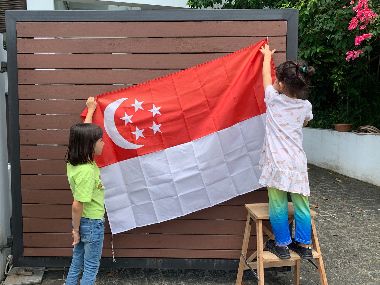 Over at author Evelyn Sue Wong's home, the National Day family tradition involves getting her granddaughters Elly Fearnley, seven, and Edith, five, to put up the national flag outside their home. "National Day is such a happy celebration for kids," says Wong, 72.