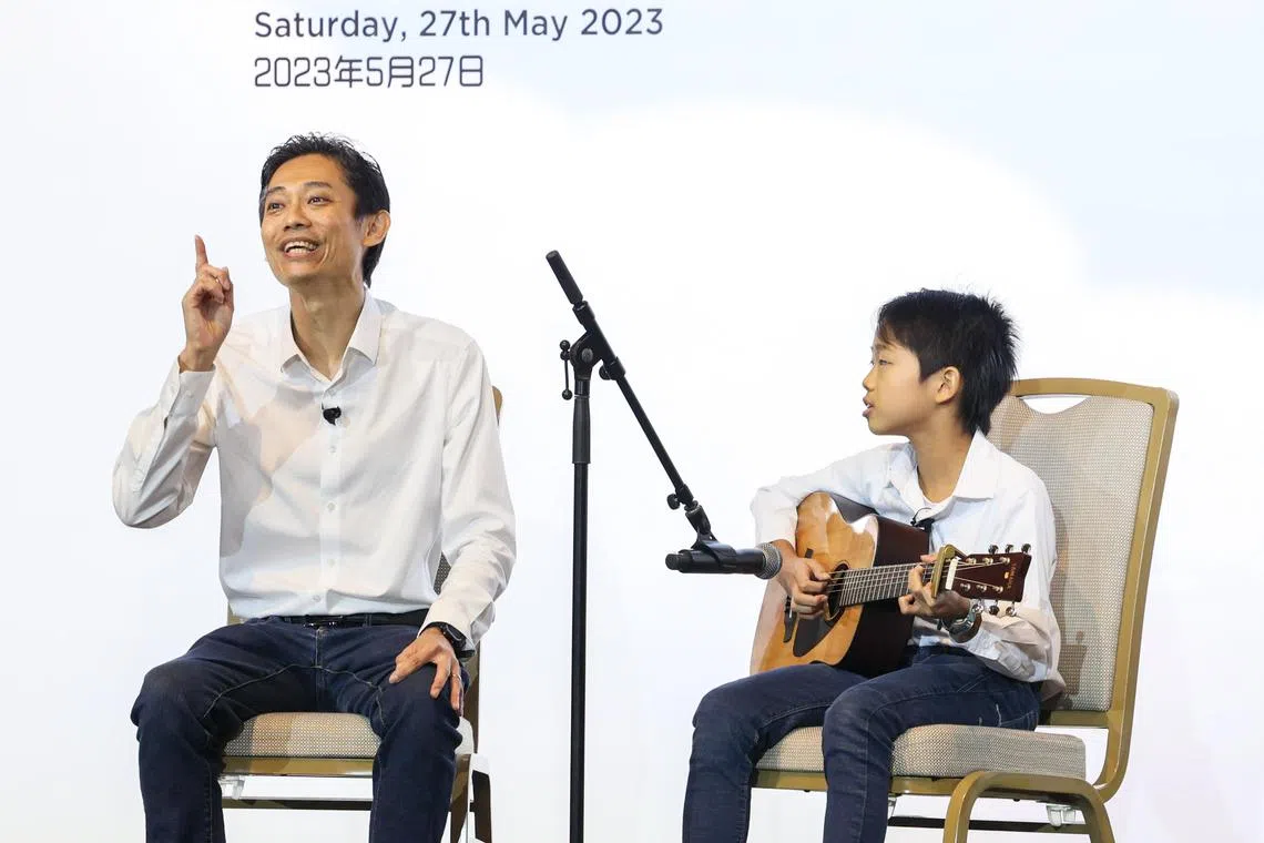 Mr Lim Choan Siong and his son Lim Ze Hang were the winning team from Category C (Primary 3 to 6) in the 2023 Speak Mandarin Campaign family talent competition.