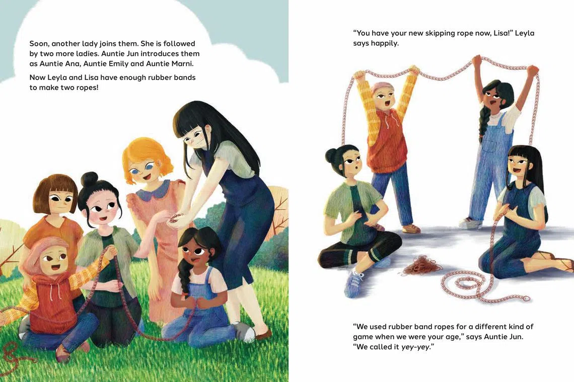 New to the neighbourhood, Leyla is feeling lonely. Little does she expect to help a girl at the playground and become friends with her by making a skipping rope out of rubber bands.