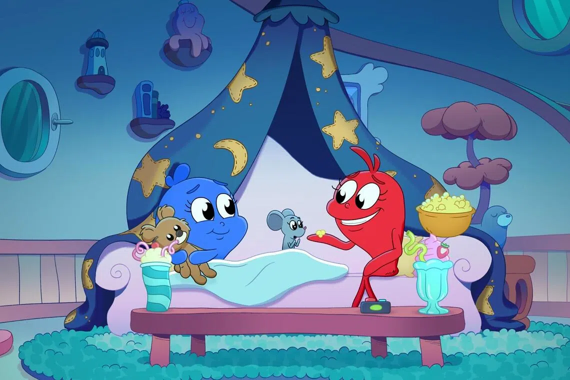 Dr Seuss’s Red Fish, Blue Fish, which premiered on Sept 8, is a five-part pre-school comedy series. Each episode, running 24 to 31 minutes, features two very different fish friends exploring the world and introducing opposite concepts through their adventures.
