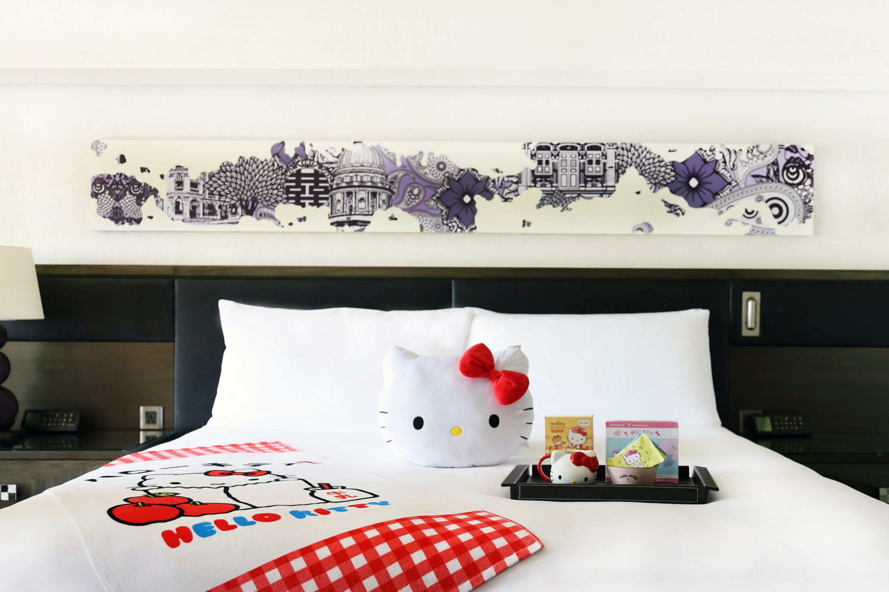 After your stay, you get to take home a set of Hello Kitty collectibles, including a cushion, towel, drawstring bag, mug, bowl and door hanger.