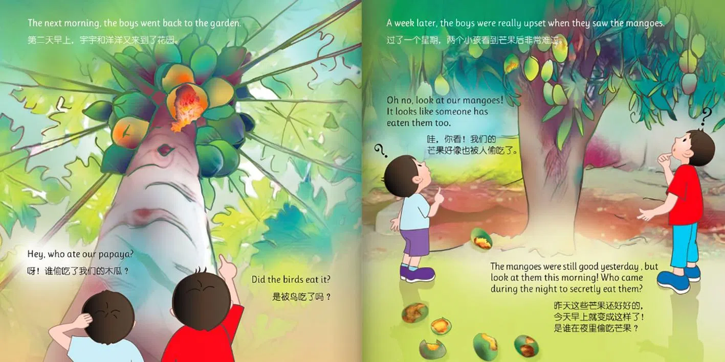 Who Stole Our Fruits? is part of The Little Detectives, a four-book series written in English and Mandarin.