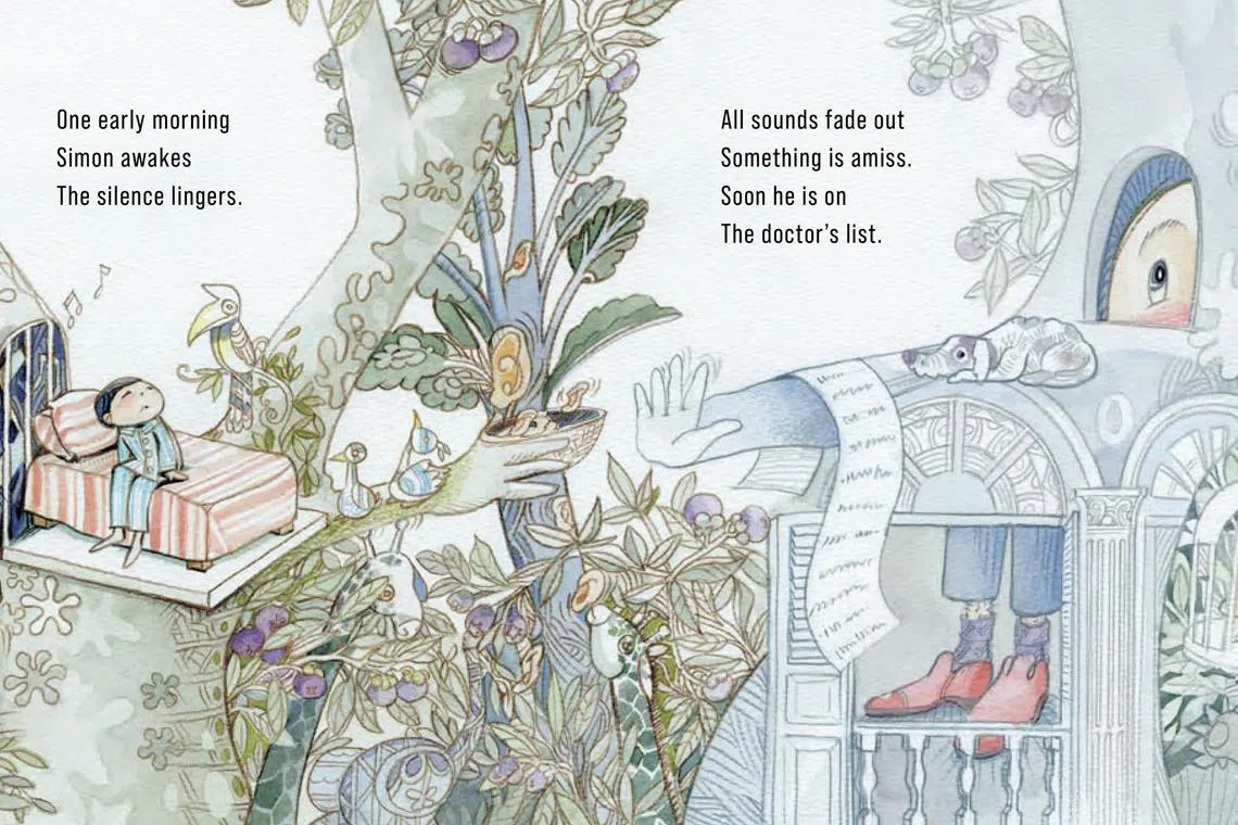 Picture book Simon’s World Of Colourful Sounds is written by Adeline Lynn Quek and illustrated by Lee Kowling.