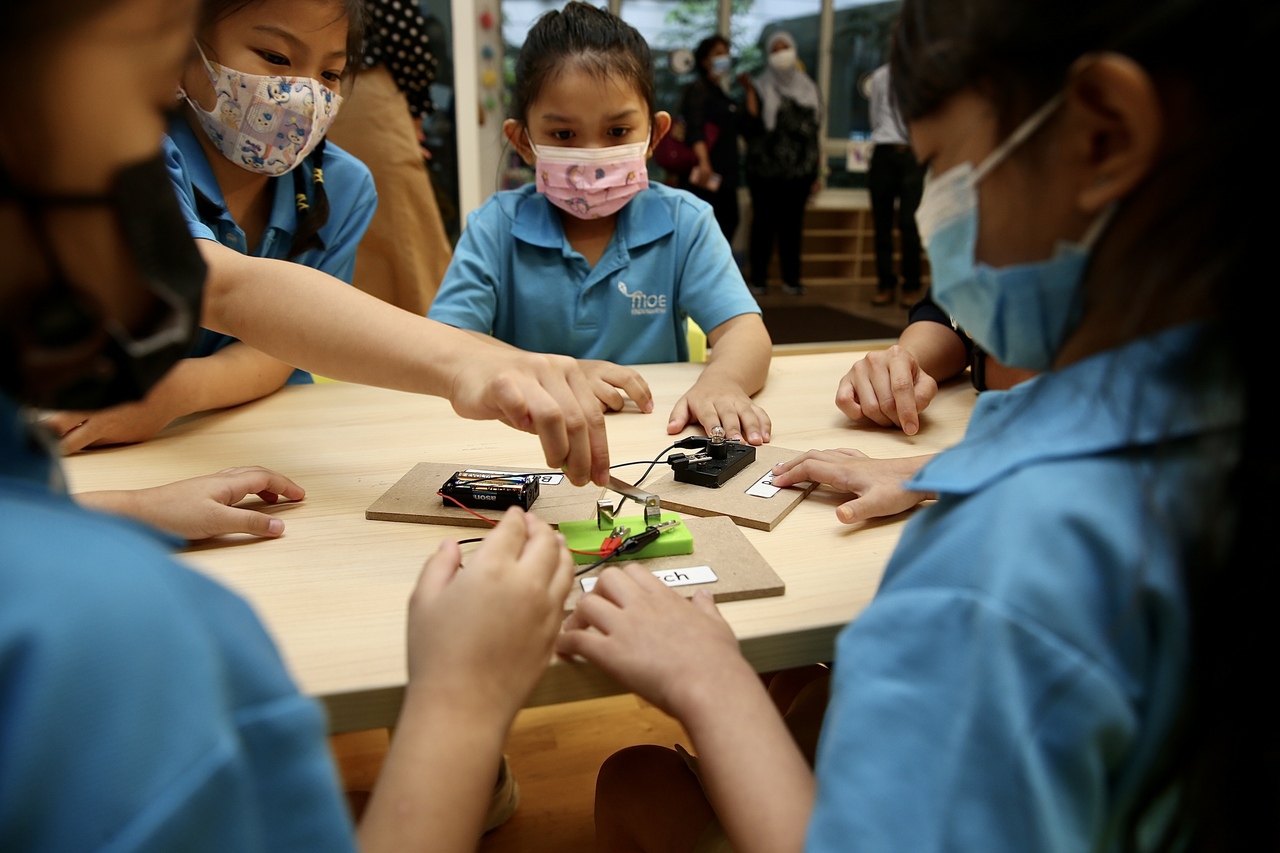 Kindergarteners at the launch of the 3M Girls Can Tinker science outreach programme on April 28, 2022.