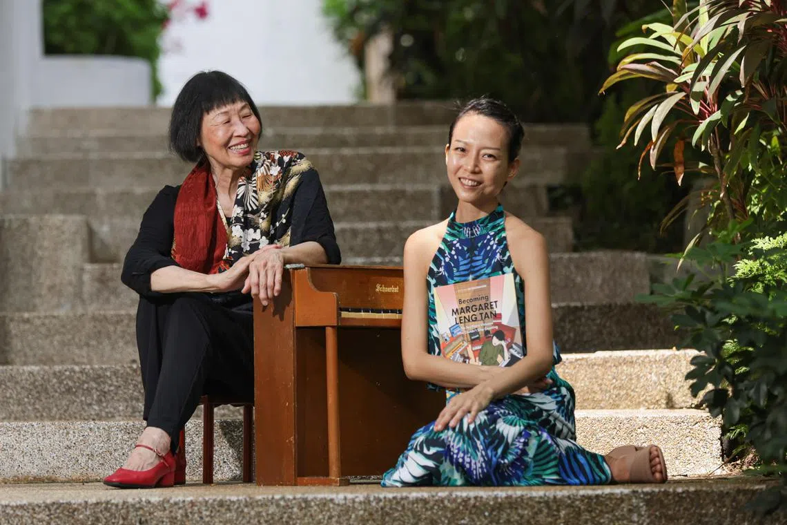 Low Lai Chow (right) with Margaret Leng Tan, the subject of her biographical picture book about the Singaporean toy piano virtuoso.
