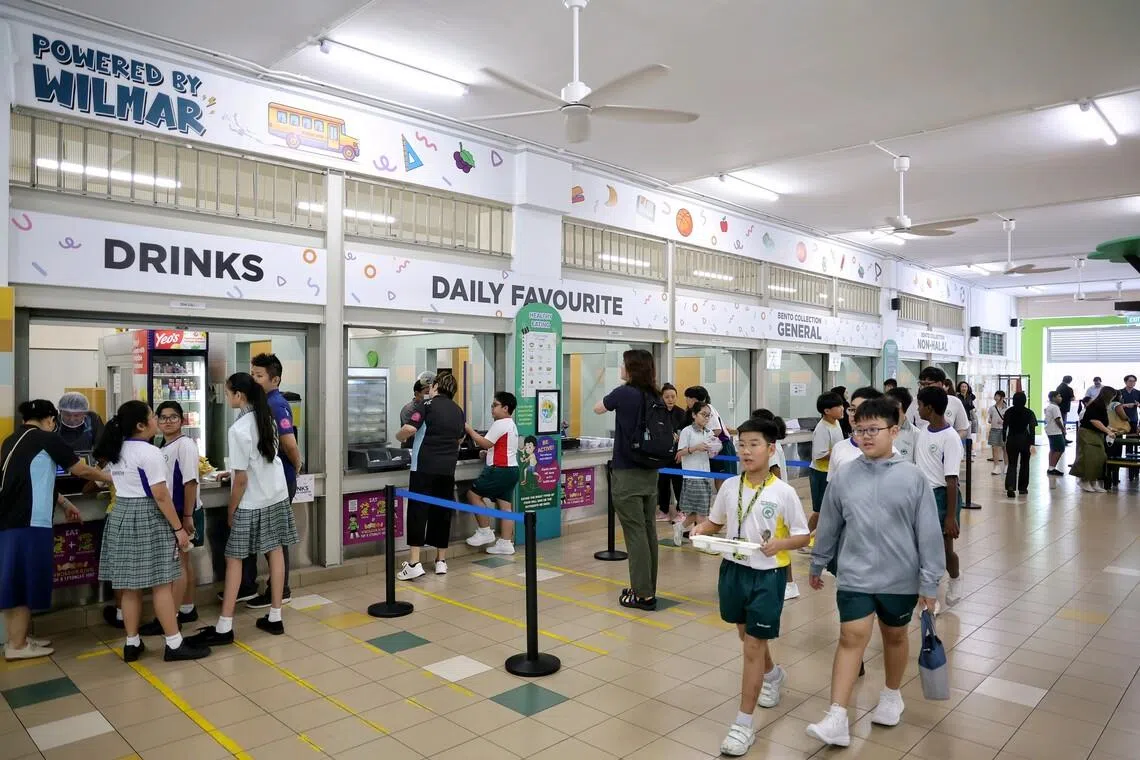 Northoaks Primary School pupils experiencing the central kitchen meal model, which started in 2026, during recess time on Jan 12.