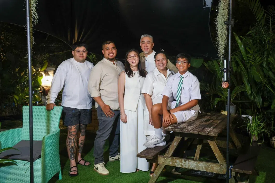 Ms Chrishirl Campos-Chua (second from right) with (from left) her sons Eduard Lee and Emmanuel, daughter-in-law Evangelyn, husband Edmund Lee and son Elliot.