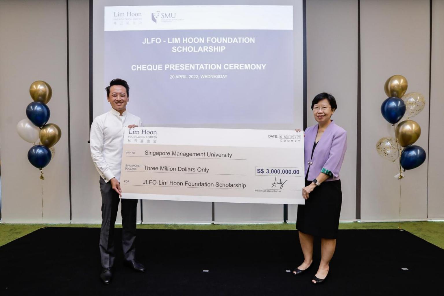 Mr Andy Lim, group chief executive of JLFO and director of LHF, who presented the cheque to SMU president Lily Kong at an event at SMU on Wednesday (April 20), said: "At Lim Hoon Foundation, education is a cause that is close to our hearts because we believe it lays the foundation to a better future.