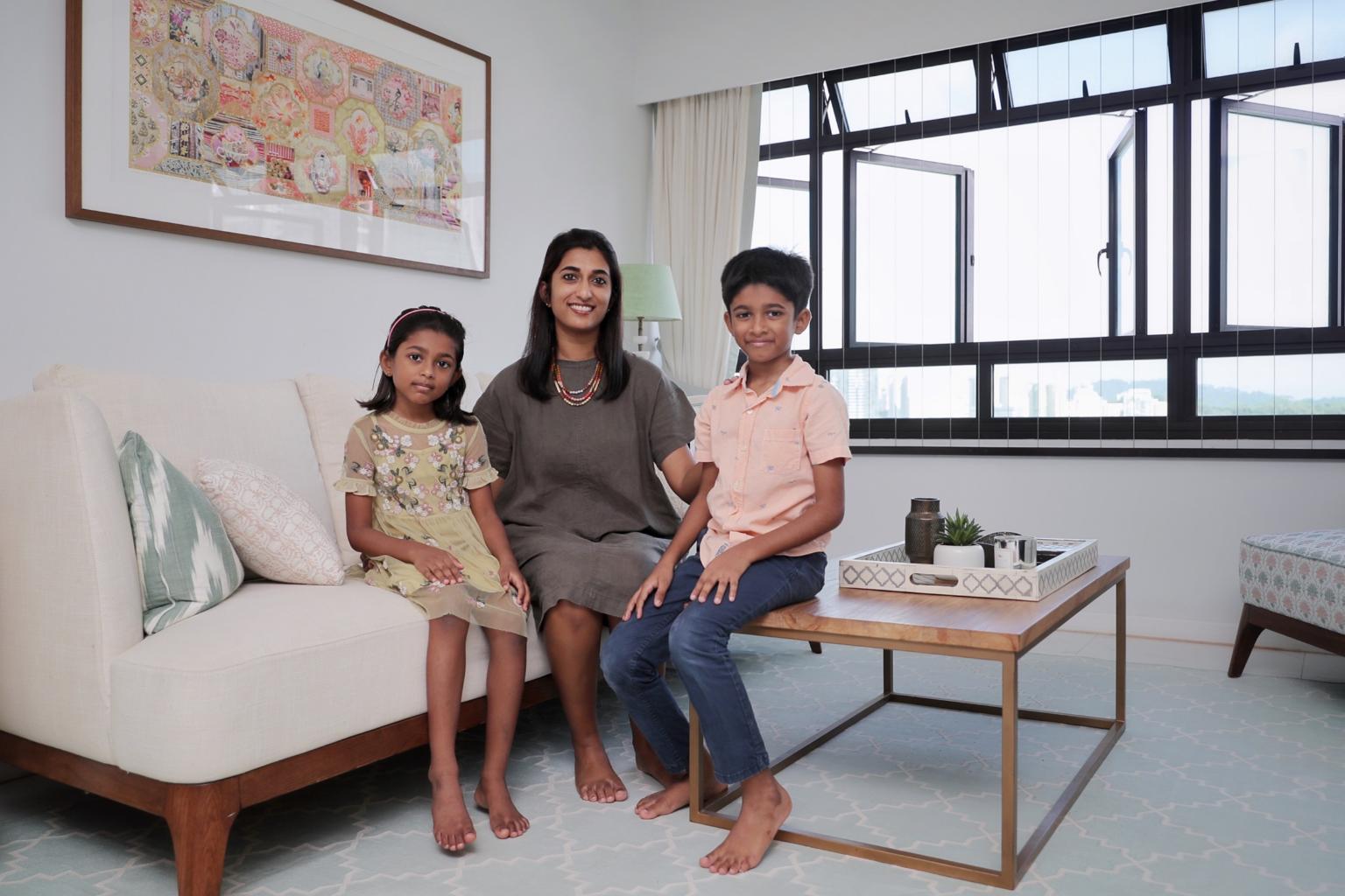 Mrs Aparna Chari Sundar and her children, Alisha (left), six, and Aryan, eight.