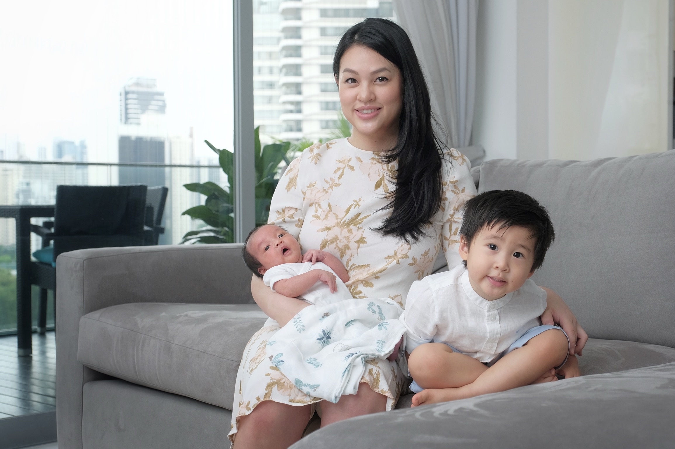 The Ice Cream & Cookie Co. founder Natasha Chiam with her month-old daughter Alexandra Lie and two-year-old son Christian Lie.