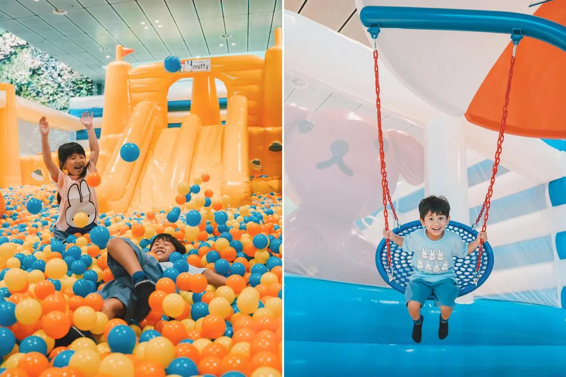 You and your kids can now hop on to Miffy’s Beach Party Bounce, an inflatable playground with 2m-tall slides that plunge into a giant ball pit and swings.