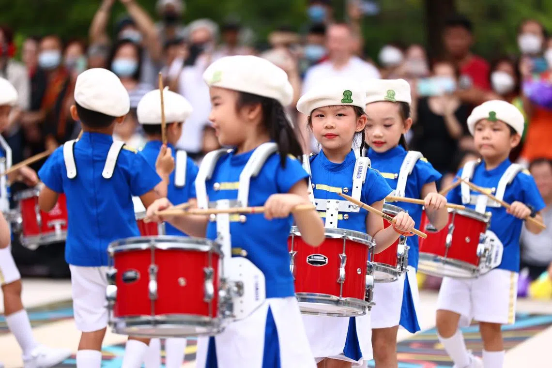 Perfectly in sync with the beat, preschooler Gillian Tan marched along with the band while holding her flag up high. The then six-year-old was performing as a colour guard in a sports fiesta organised by Kinderland in 2023