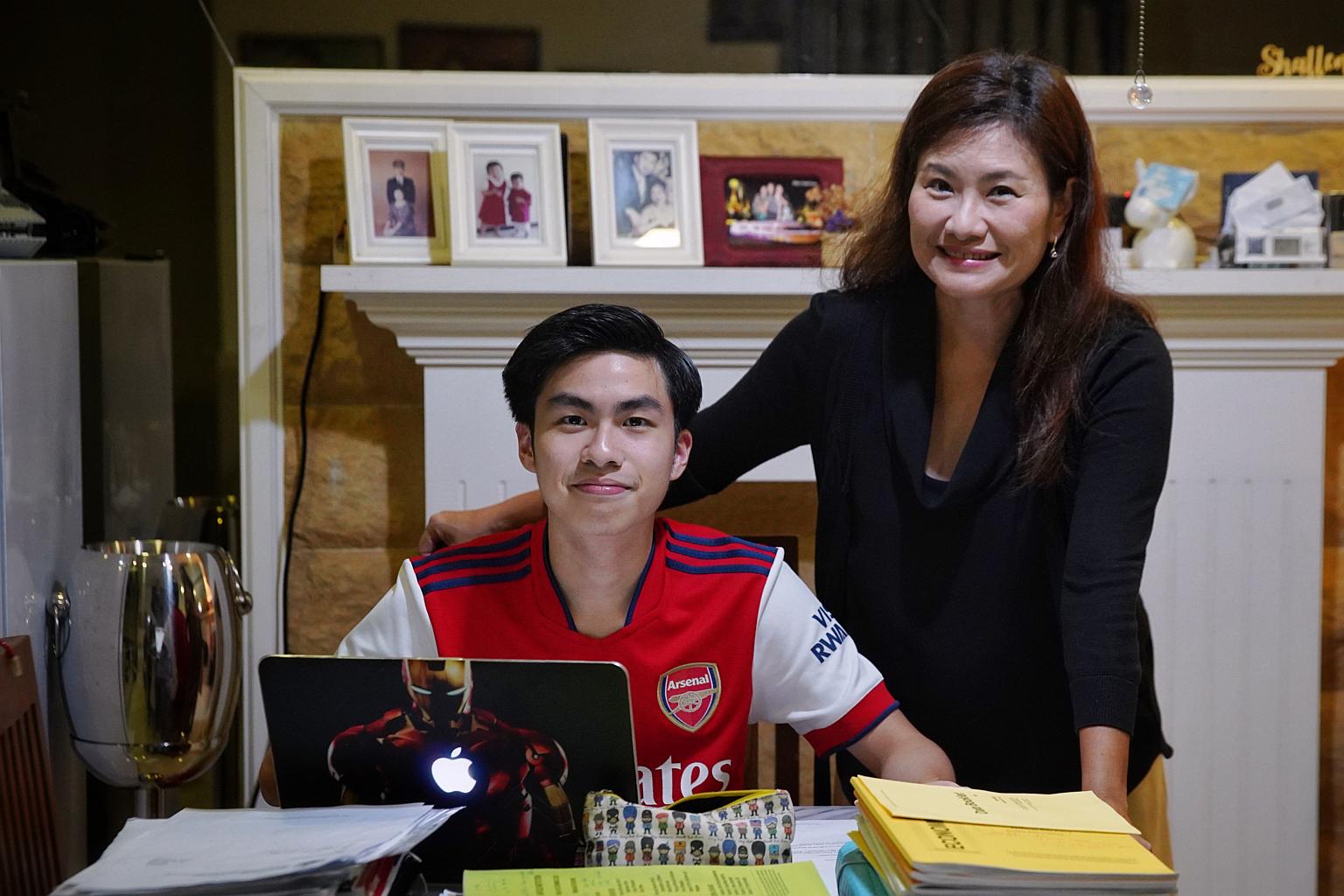 Raffles Institution year two student Damien Ooi and his mother Shallen Teo.