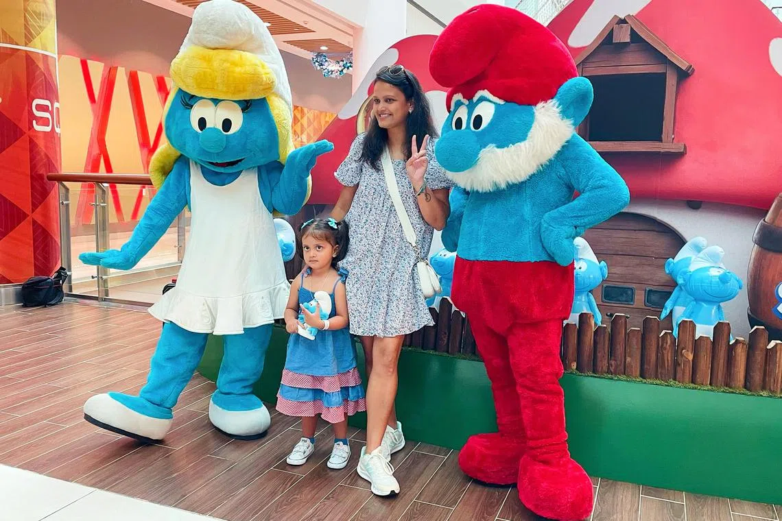 Shop at City Square Mall to redeem a meet-and-greet pass with Smurfette and Papa Smurf.