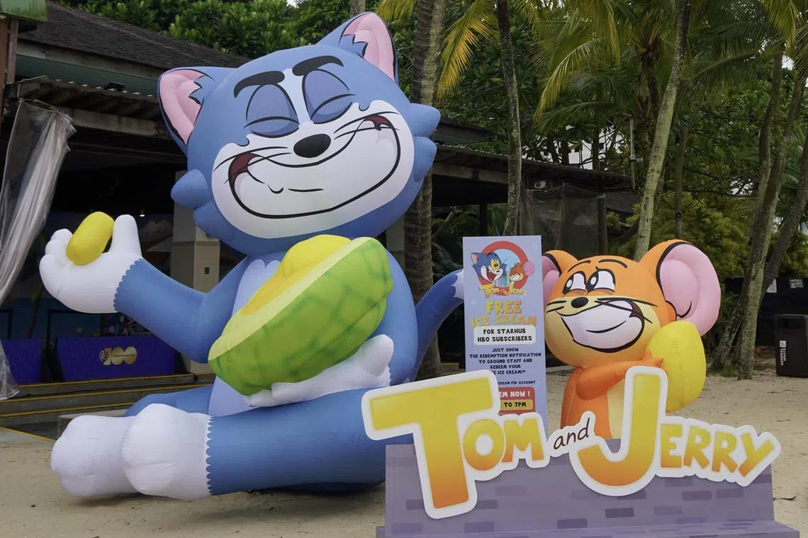 Giant inflatables of Tom and Jerry were supposed to be part of the exhibition. Unfortunately, Jerry the mouse was allegedly stolen, and Tom the cat now sits alone on Siloso beach near Emerald Pavilion.