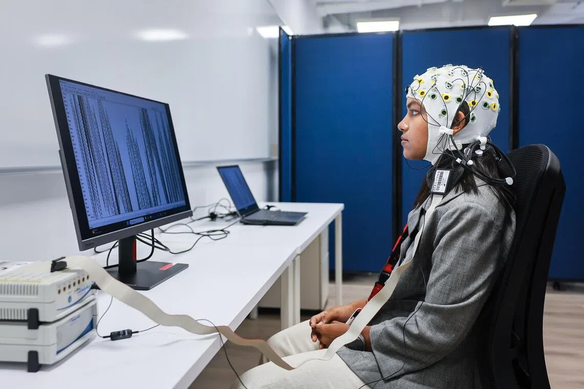 SINGAPORE – In a lab at the Singapore Institute of Technology (SIT), an information and communications technology graduate student is hooked up to a computer via a cap studded with electrodes. The cap is reading her brain signals as she imagines moving her hand in a certain direction and speed.