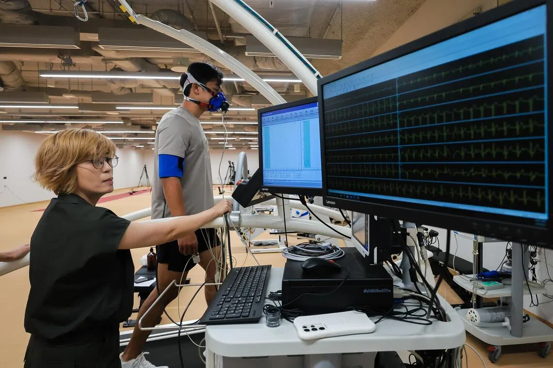 A student on a treadmill for a demonstration in SIT’s Mrs Wong-Mah Jia Lan Human Performance Lab.