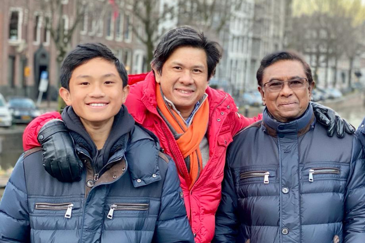 The late Mr Richard Magnus (right) with his son Keith (centre) and grandson David, in Amsterdam in Dec 2019.