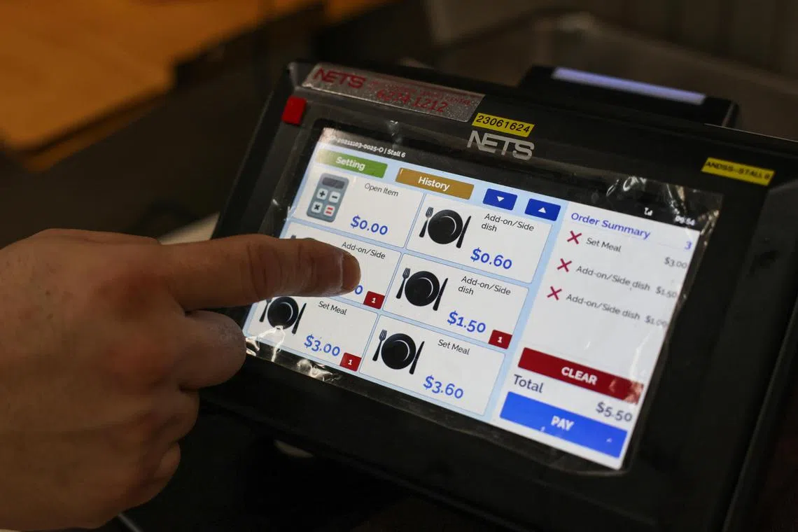 The digital payment terminal helps stallholders tabulate the total cost of a meal, saving them the effort of doing the calculations manually.