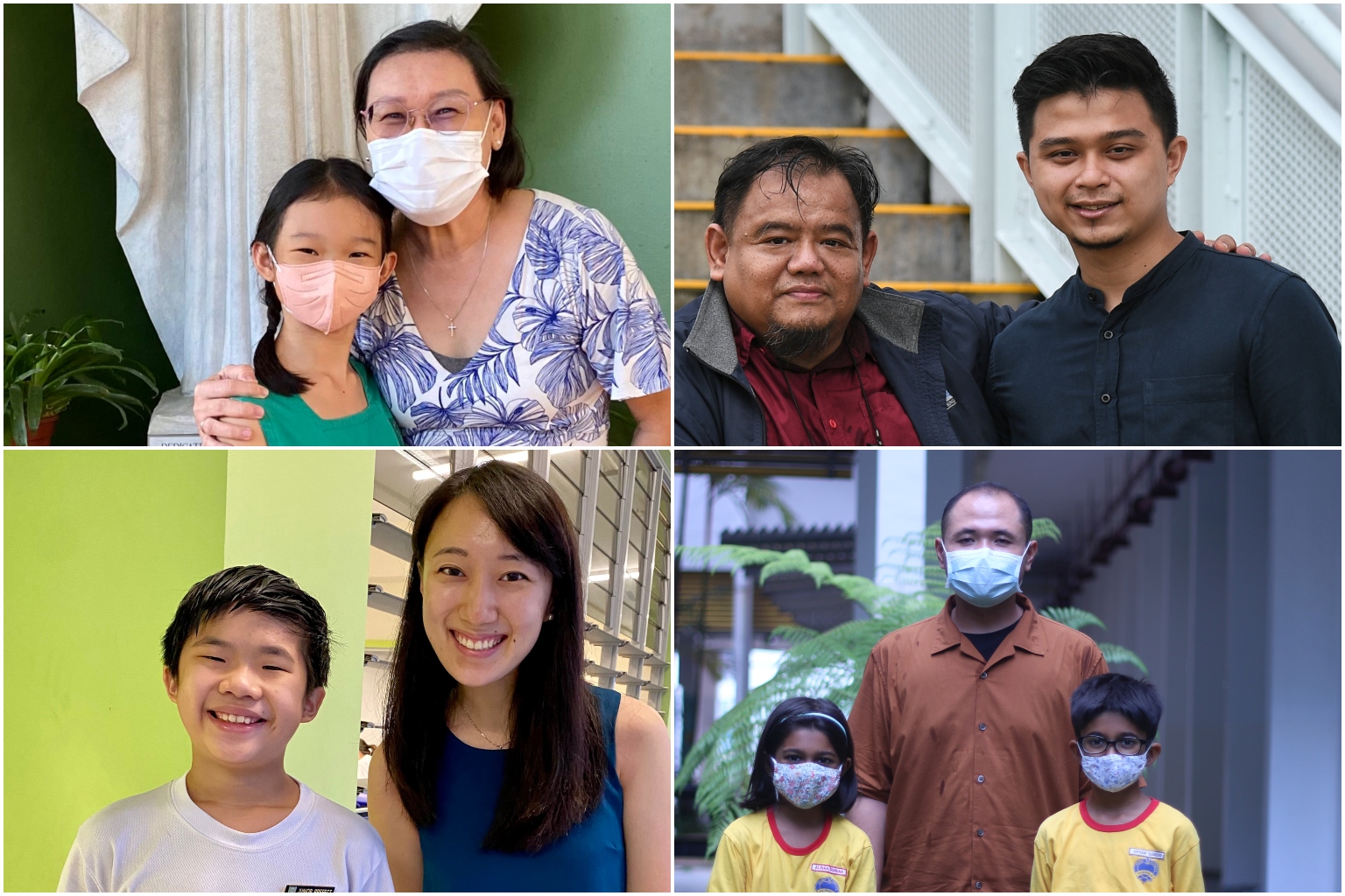 (Clockwise from top left) Ms Irene Leong with Edith Goi, Mr Mohd Farid Mohamad with Arsyad Juraimi, Mr Abdul Hadi Bakar with Alisha and Aryan Sundar, and Ms Adeline Ong with Alexander Kuo.