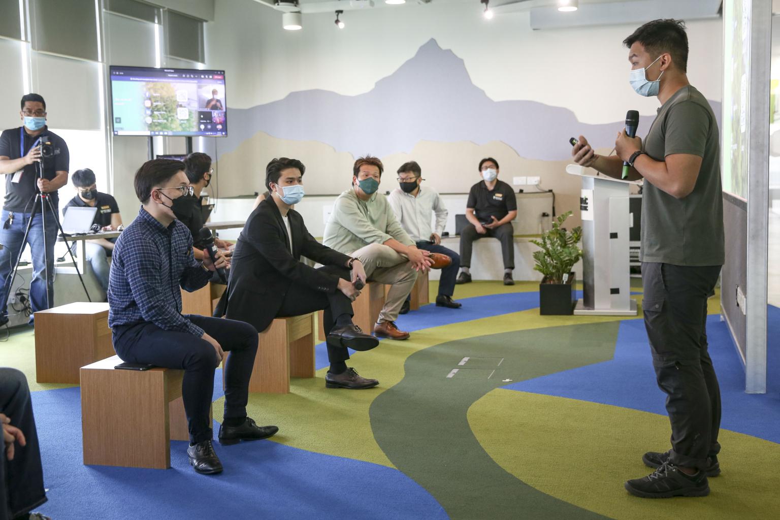 Mr Alexander Tan, founder of urban farming start-up Agritisan, pitching his proposal to a panel at the iDare Entrepreneurial Challenge held at Republic Polytechnic on Feb 14, 2022.