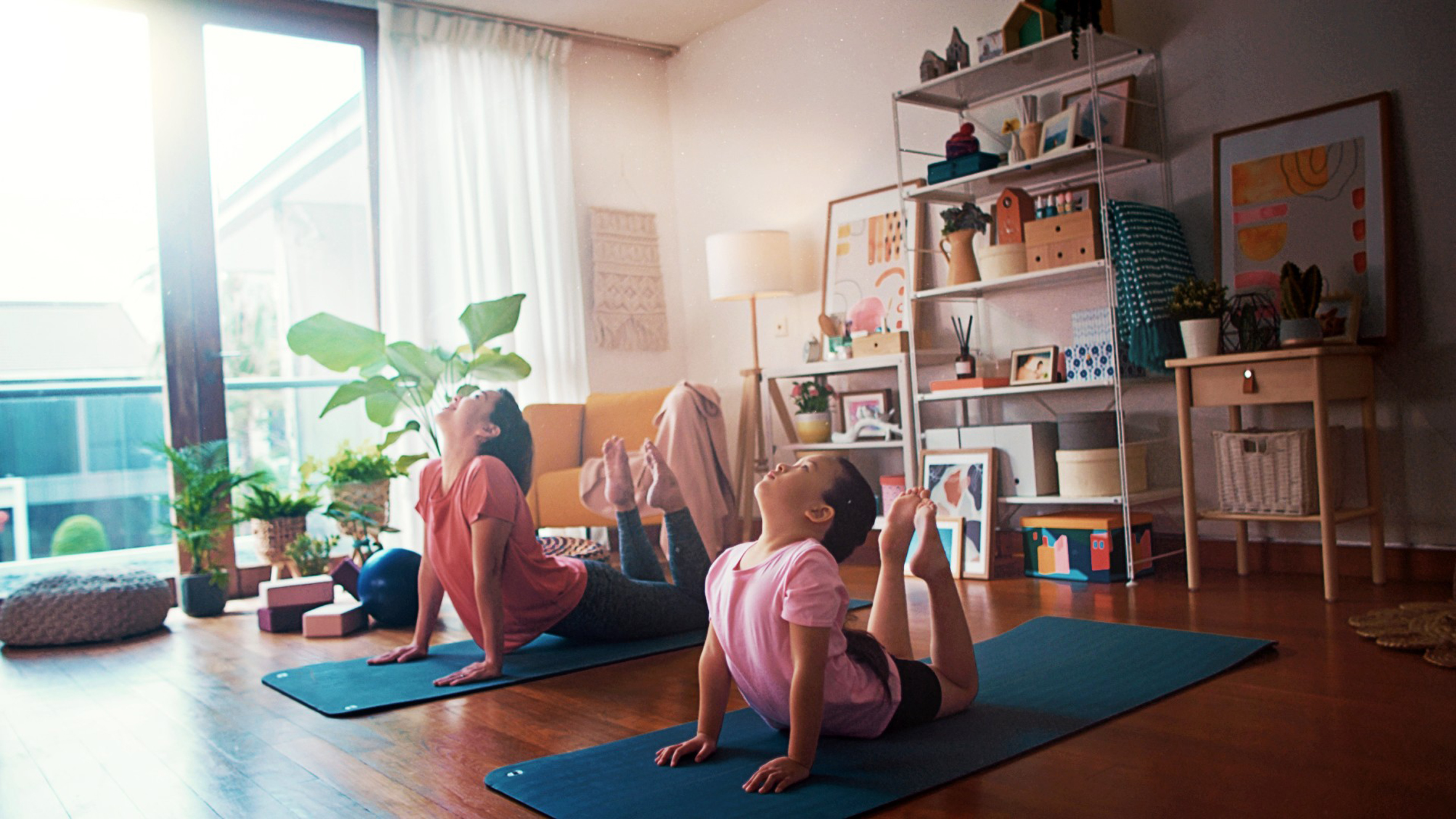 Spend time to stretch with your child on the yoga mat to release tension in muscles. PHOTO: DECATHLON SINGAPORE
