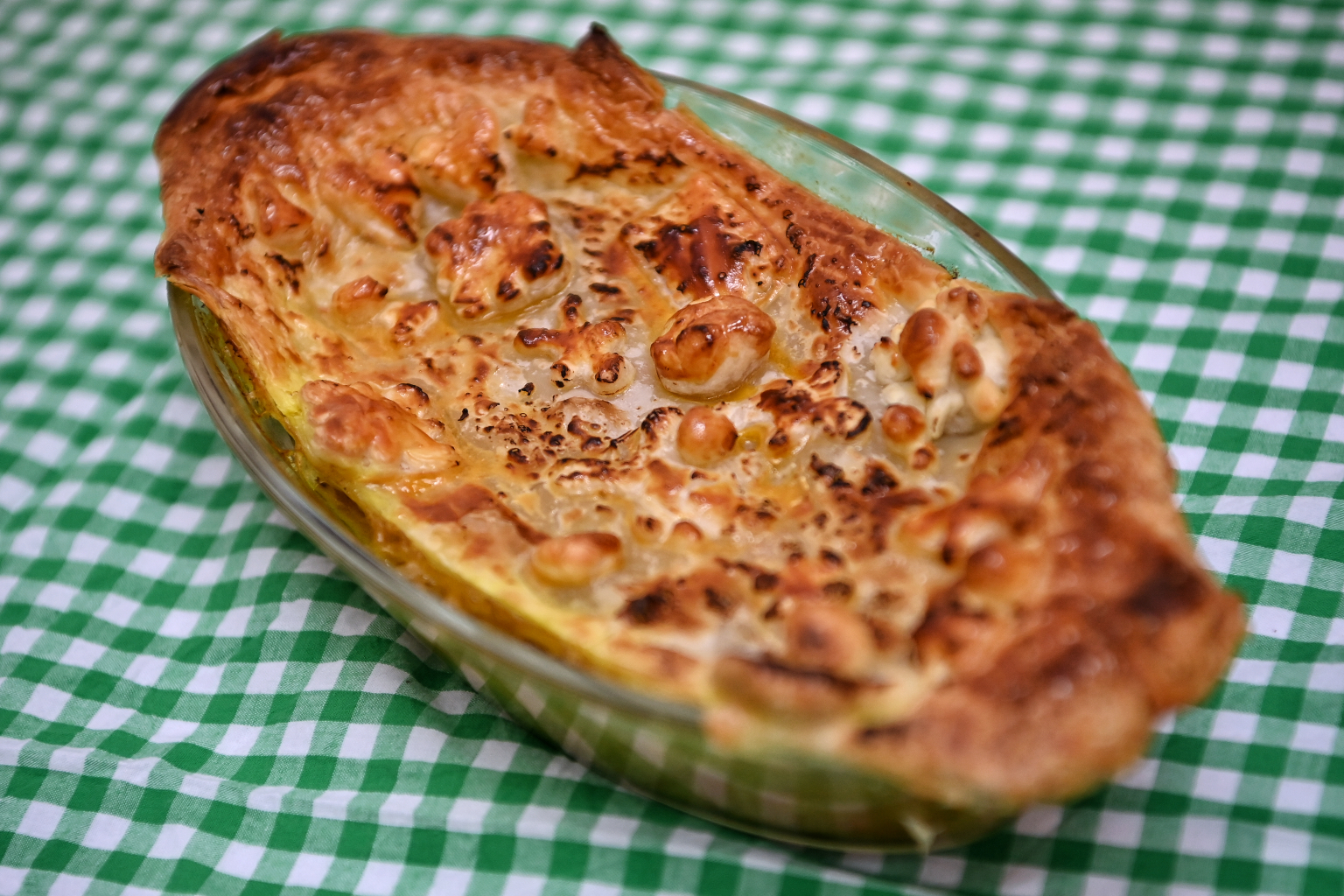 Frozen puff pastry sheets (enough to cover baking dishes)