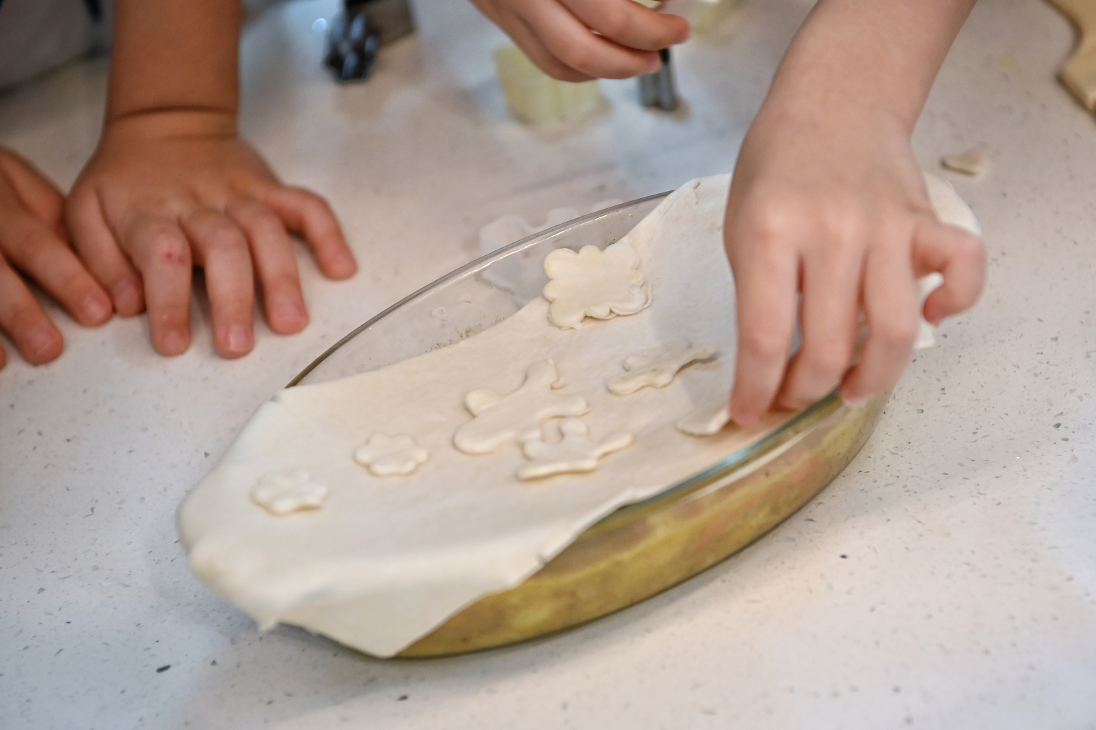 7. Gather the remaining puff pastry for your kids to decorate their pies. They can make shapes, faces and spaceships.