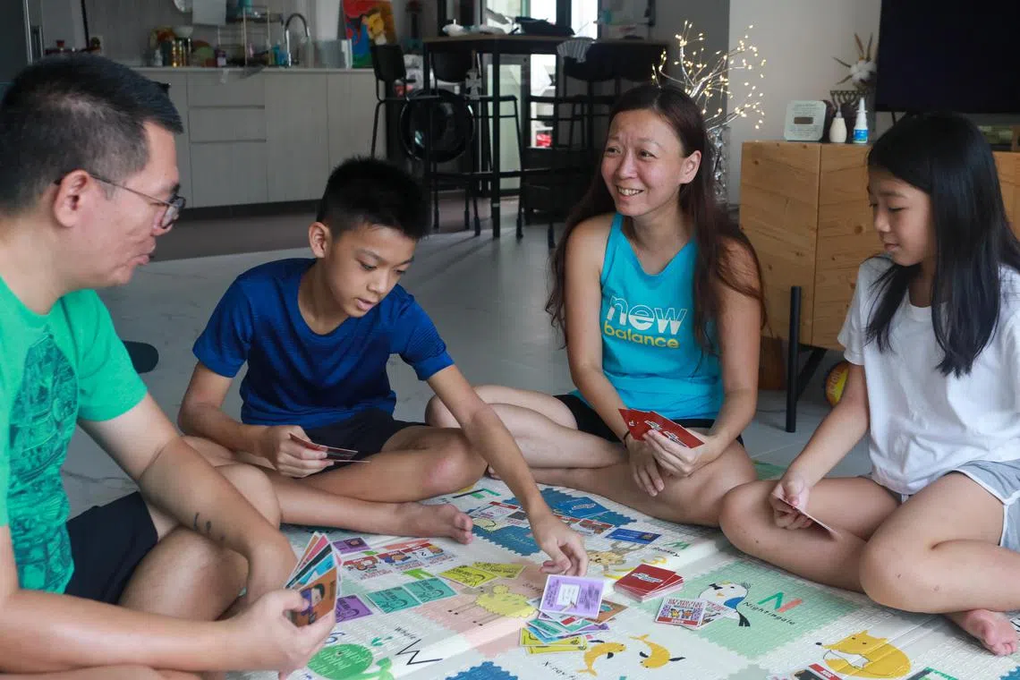 (From left) Mr Malcolm Tan, his son Sozo, wife Jessie and daughter Hannah spend time together as a family playing board games.