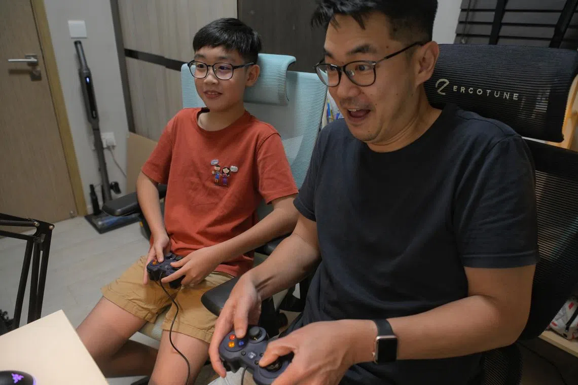 Mr Elvin Foong sometimes plays video games with his 12-year-old son, Nathan, during his study breaks at home.