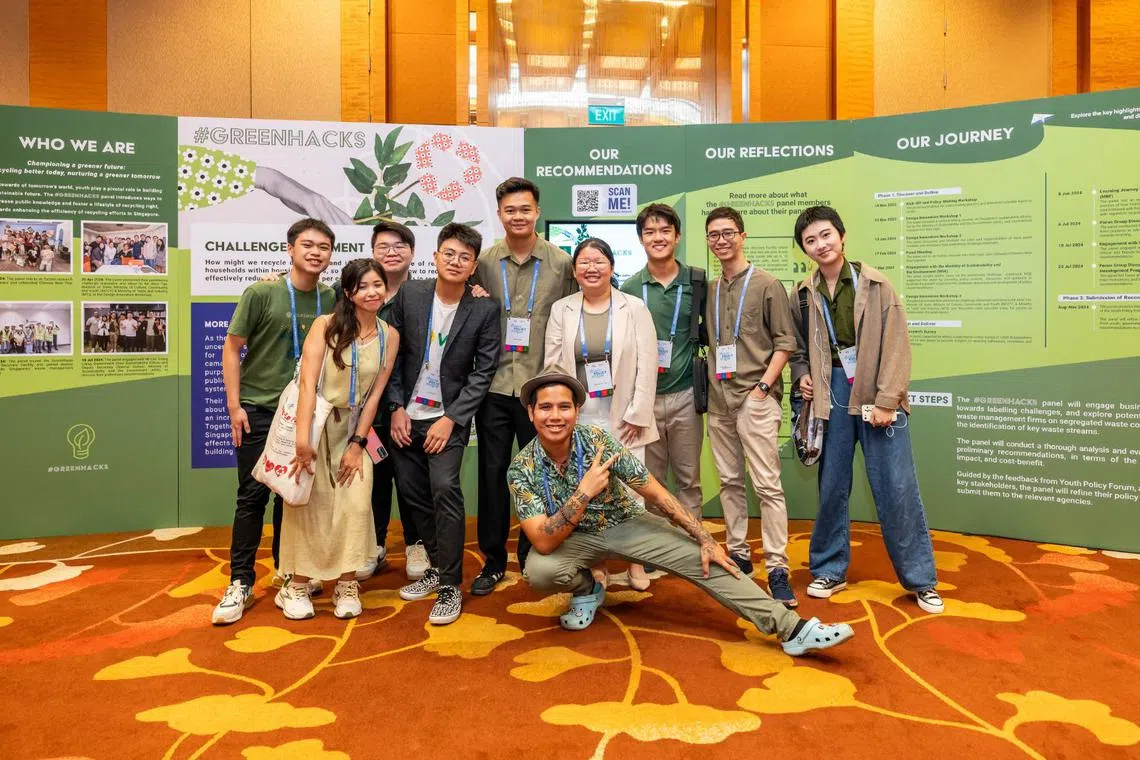 #LifeHacks developed a prototype for the Financial Literacy Excellence (FLEX) Guide. #GreenHacks proposed simplified recycling labels and segregated waste bins to improve household recycling rates. #TechHacks developed strategies to combat online harms, while #JobHacks crafted recommendations to help young Singaporeans seize opportunities in South-east Asia.
