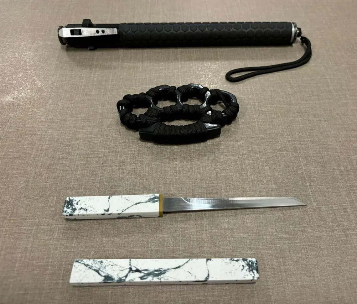 A baton, a knuckle duster and a pocket knife were among items seized from the vehicle.