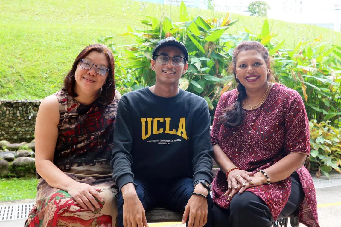 Millennia Institute student Arjoon Selvaraja with his form teachers Ms Giam Suyin (left) and Ms Tamilselvi Siva.