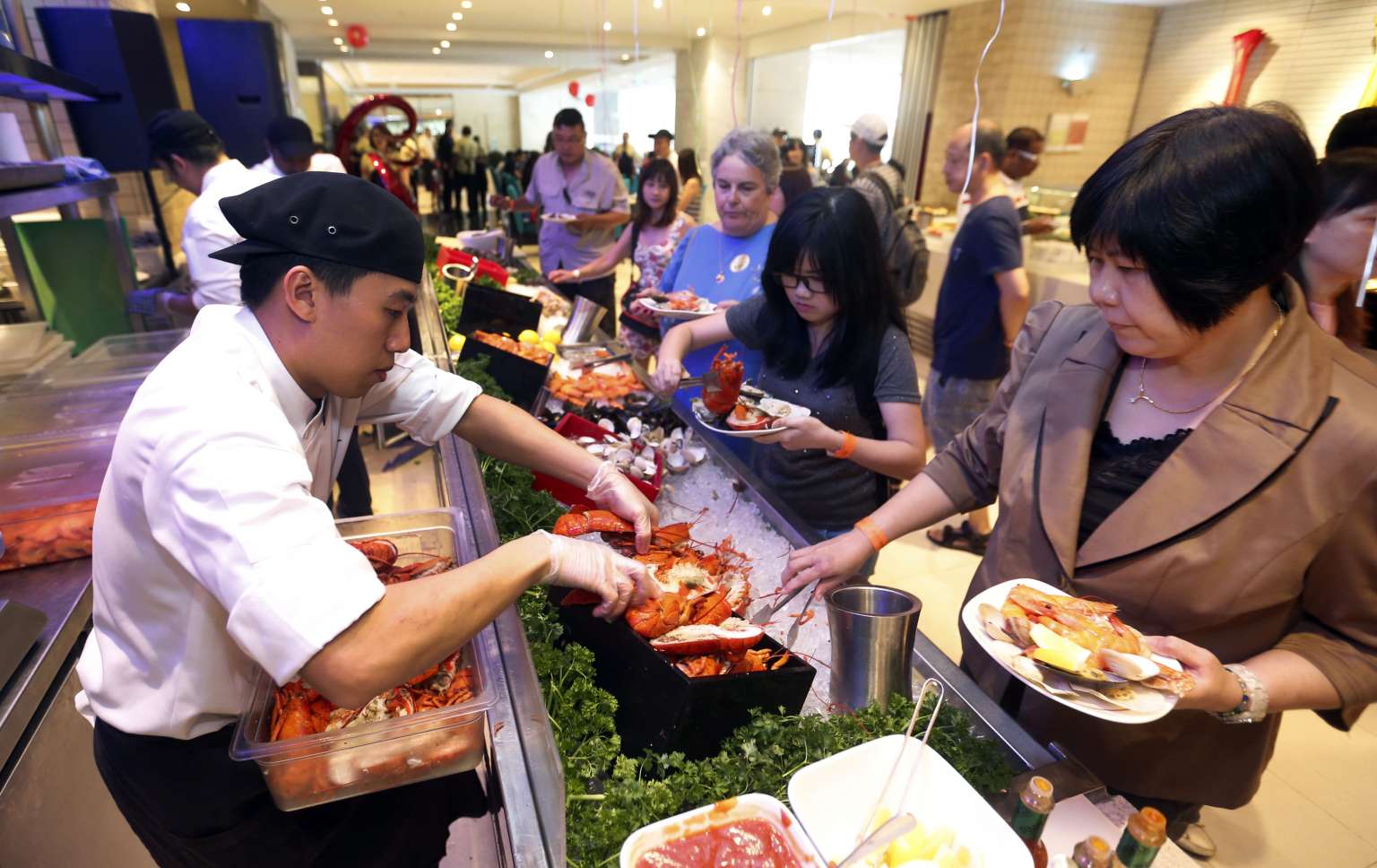 Diners set their own prices for the international spread worth $76 a person, which included lobsters and oysters. A 10kg cake was also created for the occasion, which marked the restaurant's 10th year anniversary.