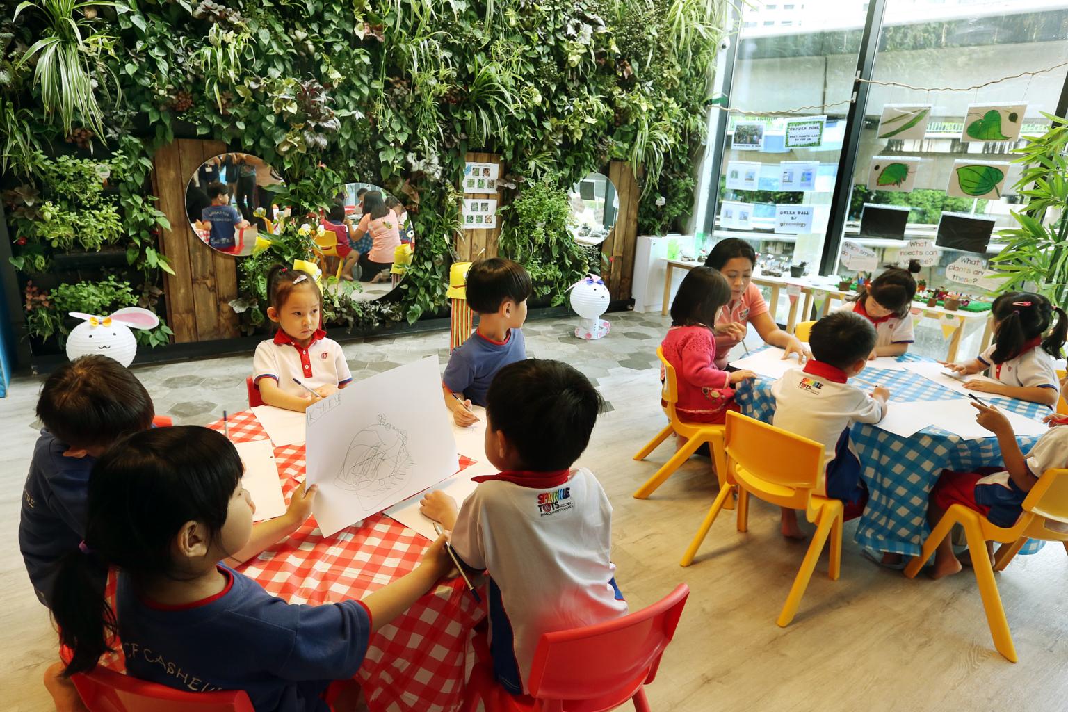 Children can learn about different types of plants by sketching leaf patterns, or learn basic concepts like estimation and observe how material changes its form when they help out in baking activities, said the centre's principal Doreen Lim.