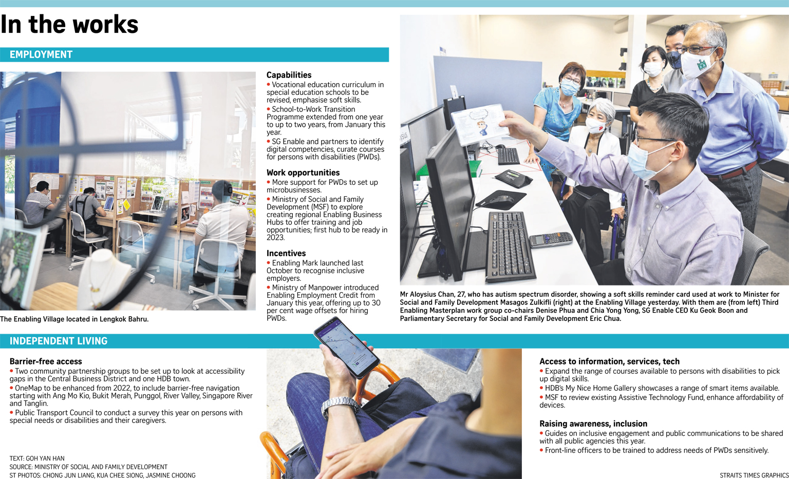 The two work groups were launched in 2019 as part of the Third Enabling Masterplan, a national road map to building a more inclusive society for people with disabilities here.
