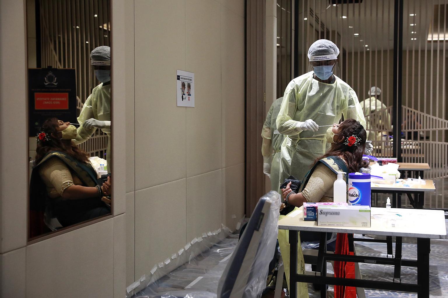 A wedding guest being swabbed ahead of a ceremony at Four Points by Sheraton Hotel. Vaccinated individuals will be exempt from requiring such pre-even testing.