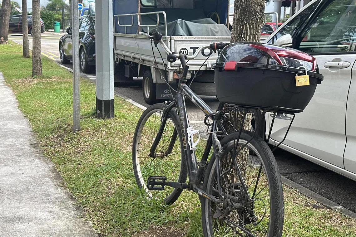 The locked bicycle near Lorong 21A Geylang where street peddlers supposedly hide their prescription drugs.