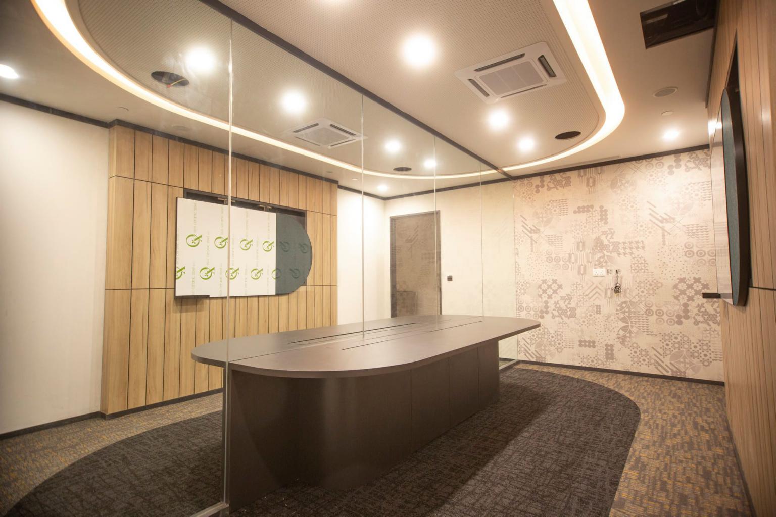 Photos show furnished guest rooms and partially-furnished meeting rooms, with some work still going on in the courtyard, common corridors and other areas.
