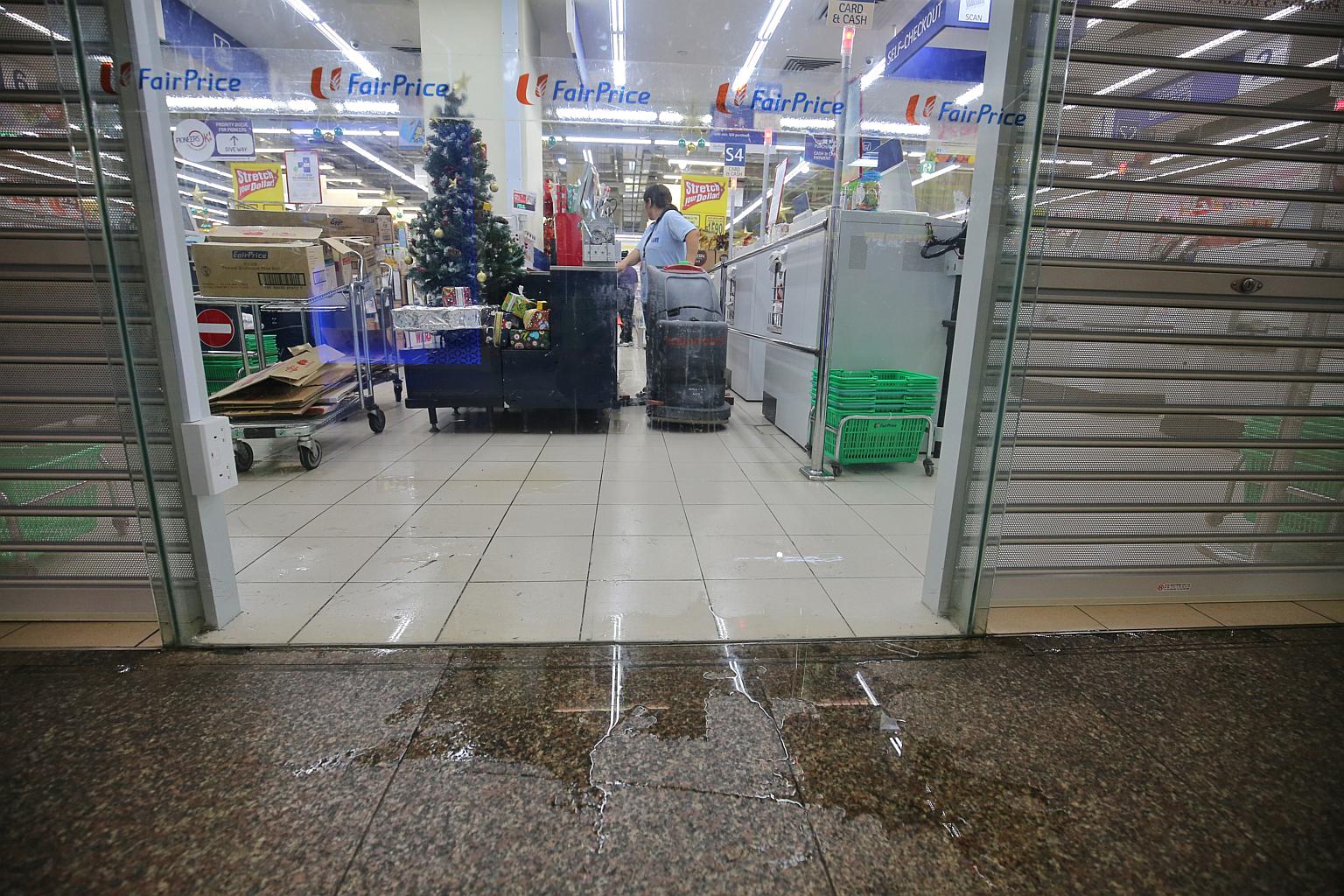 SINGAPORE - A pipe burst at an NTUC FairPrice outlet in Toa Payoh Central on Thursday (Dec 14), sending water pouring down from the ceiling.
