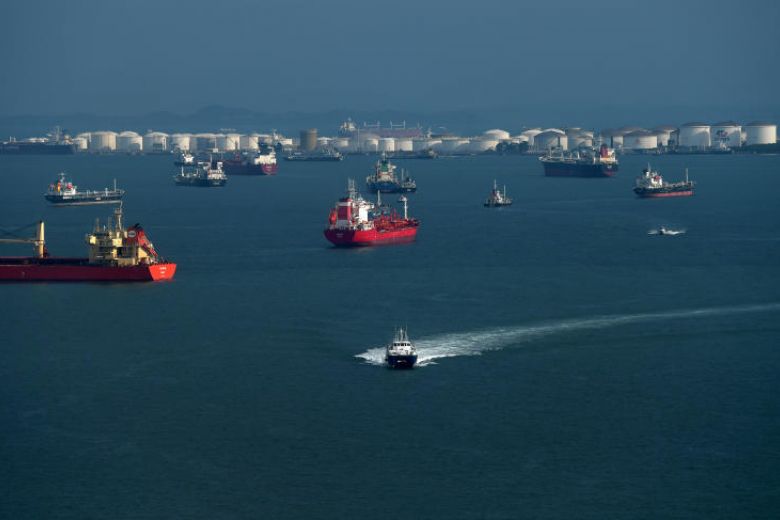 Container ships moored off the Singapore Strait on July 26, 2019. Two ships in the Strait were attacked by pirates early on Feb 9, 2020.