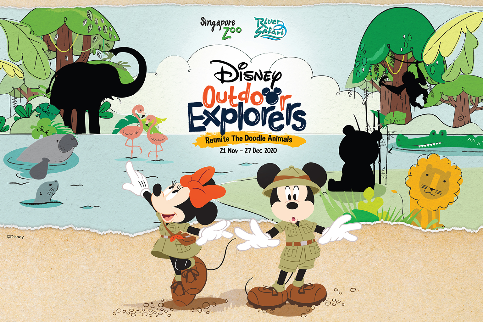 Some playful Disney doodle animals have wandered off at Singapore Zoo and River Safari. Help Mickey and Minnie track elephant footprints or spot the cheeky orangutans at the treetop boardwalk! Follow Mickey and Minnie on a trail to reunite the doodle animals!
