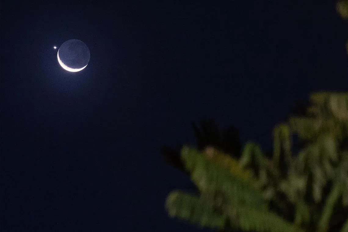 Planet of love Venus sidles up to glowing crescent moon in Singapore night sky