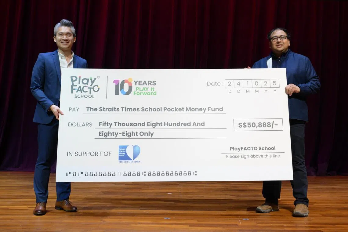 SINGAPORE – Student care and enrichment centre chain PlayFACTO School has raised $50,888 for The Straits Times School Pocket Money Fund (STSPMF), which provides children from lower-income families with financial support.