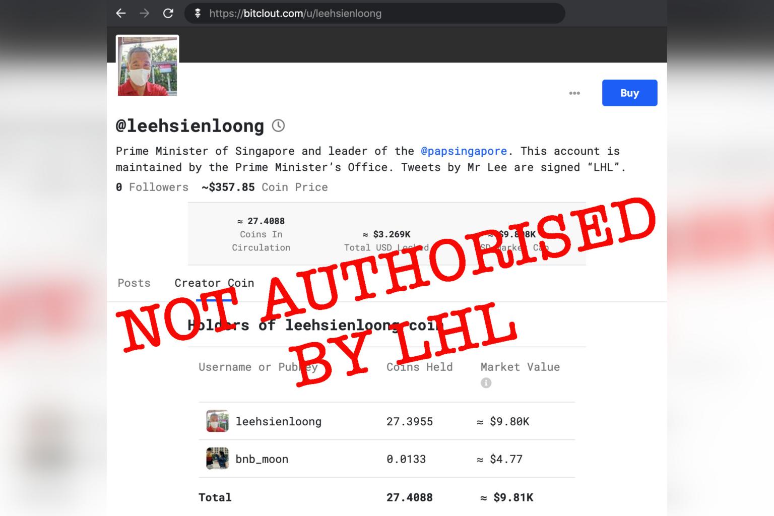 PM Lee said in a Facebook post late on Friday, without naming BitClout: "The site's creators are anonymous, but I have sent an open tweet out to ask that my name and photo be removed from the site immediately, as I have nothing to do with the platform. It is misleading and done without my permission."