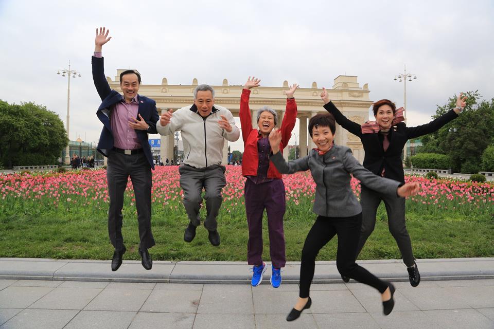 PM Lee shared a photo of him and wife Ho Ching, along with Minister of Culture, Community and Youth Grace Fu, Senior Minister of State for Foreign Affairs and Transport Josephine Teo and Minister of State for Trade and Industry and National Development Koh Poh Koon executing a jump shot during a working trip to Moscow, Russia, in May.
